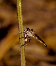 Keywords: insect fly brown robber fly resting stalk wild queensland australia