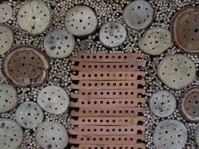 Keywords: insect hotel nesting help drill holes entry openings tree grates insect house insect asylum insect box hibernation help insect insect protection measures perforated nature conservation wood grid tile natural materials bamboo sticks
