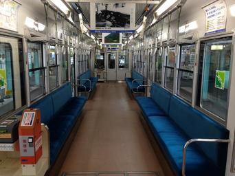 Keywords: Inside Deo 815.JPG ja 叡山電鉄デオ815車内 悠久の風 仕様 en Inside Eizan Railway Deo 815 2014-08-28 17 21 51 own Hahifuheho 35 030619444444 135 77337777778 cc-zero Uploaded with UploadWizard Eizan Electric Railway series Deo 800