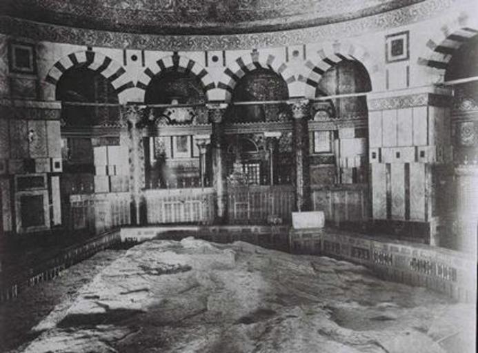 Keywords: Inside the Dome of the Rock.jpg INSIDE THE DOME OF THE ROCK MOSQUE OMAR ON THE TEMPLE MOUNT IN JERUSALEM COURTESY OF AMERICAN COLONY http //147 237 72 31/topsrch/datafile/wwwm6758 gif 1915-01-01 MATSON ERIC PD-Matson Interior of the Dome of the Rock Foundation Stone Temple Mount Historic Images of the Dome of Rock Photographs of Palestine in the Matson Collection |