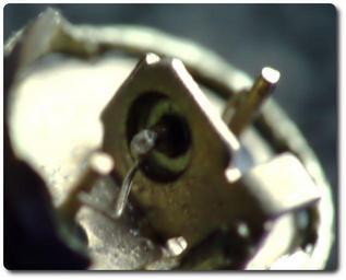 Keywords: Inside Polish germanium transistor TG50.jpg en Inside Polish germanium transistor TG50 pl Wnętrze tranzystora TG50 produkcji TEWY own RJB1 Germanium transistors Alloy junction transistors Tewa Poland