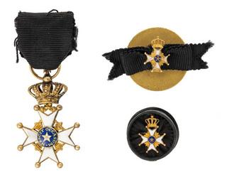 | Keywords: Insignier till Nordstjärneorden tillhörande Walther von Hallwyl - Hallwylska museet - 110579.tif LSH artwork sv INSIGNIER dekorationer TILL NORDSTJÄRNEORDEN Bestående av riddar- och kommendörsdekorationer Riddardekorationer Bestående av miniatyrriddartecken med band samt miniatyrstjärna med rosett Miniatyrriddartecken med band Av guld med emalj Grekiskt kors med kluvna ändar varje korsspets avslutad i en liten sfärisk kula av guld armarna på båda sidor belagda med vit emalj I korsningspunkten på vardera sidan en glob i blå emalj i vars mitt en stjärna i vit emalj med kantbegränsning i guld; kring kanten i guld latinsk omskrift NESCIT OCCASUM Hon vet ej av nedgång Band Av vattrat siden moiré H 3 cm; utan krona H 2 B 2 cm Band B 1 8 cm Miniatyrstjärna Av guld Främre delen utgöres av ett litet kors som miniatyrordenstecknets men utan omskrift under detsamma en avlång bygel för bandrosetten; bakre delen utgöres av en rund tunn skiva av guld; mellan delarna en kort platt hals Rosett Av svart sidenripsband med kluvna ändar Diameter 2 cm Kommendörsdekorationer Bestående av ordenskors med band och etui samt knapp jämte kraschan med etui Ordenskors kommendörstecken med band och etui Av guld med emalj I form och dekor som miniatyrordenstecknet men kronan här med imiterade juveler av röd grön och vit emalj; omskrift NESCIT OCCASUM I övre kronans riksäpple här i ringen en avlång länk av platt skena vari bandet är fäst Band Av svart vattrat siden moiré H 7 8 cm; utan krona H 5 5 cm; B 5 5 cm Band L 65 B 6 cm Etui original Av trä rektangulärt med svagt kupigt fällock samt klätt med rött pressat skinn saffian på locket i guldtryck en smal ram med ett diagonalt utstående bladornament i varje hörn kring kanten en bård av bågar med utåtvända ändar; foder av röd silkessammet och vitt siden atlas På främre änden ett haspknäppe av mässing H 4 1 L 13 B 9 2 cm Knapp bouton; för kommendörer av 2 a kl Av svartlackerad plåt Främre delen utgöres av en rund sarg klädd med svart siden på framsidan ordenskorset; bakre delen av en rund tunn plåtskiva; mellan delarna en kort hals H 1 2 D 1 7 cm Kommendörskraschan med etui Av silver Grekiskt kors med kluvna ändar på varje arms framsida längdgående rader av fasetterade knoppar de på armarnas spetsar större I korsningspunkten en pålagd femuddig stjärna På baksidan grov flackstavig nål och krylle H 7 5 B 7 5 cm Etui original Av trä kvadratiskt med svagt kupigt fällock samt klätt med rött pressat skinn; kring kanterna en bladbård; foder av röd silkessammet och vitt siden atlas På framsidan tryckknäppe av mässing H 3 7 cm; sidlängd 10 5 cm Walther von Hallwyl blev riddare av Nordstjärneorden 1 a kl 16 maj 1890 kommendör av samma orden 2 a kl 1 december 1898 och av 1 a kl 6 juni 1911 original caption Insignier till Nordstjärneorden tillhörande Walther von Hallwyl <br/> Nyckelord Föremålsbild Insignier Nordenstjärneorden Walther von Hallwyl gold - enamel HWY place of origin original filename hm_dig24618 16612 inventory number HWY XXV II A a 01 110579 CC-BY-SA Helena Bonnevier <gallery caption Different images of same object > File Insignier till Nordstjärneorden - Hallwylska museet - 90103 tif File Nordstjärneorden Foto till boken Ett sekel av dräkt och mode ur de Hallwylska samlingarna - Hallwylska museet - 90104 tif </gallery> Walther von Hallwyl Jewellery in the Hallwyl museum Jewellery Helena Bonnevier Media contributed by LSH unmatched keyword Media contributed by LSH 2016-12 |