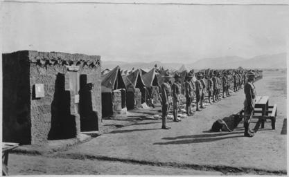 | Keywords: Inspecting packs, Company M, 16th Infantry., El Valle, Mexico, September 16, 1916. Orderly-room and bulletin board, in f - NARA - 533144.tif Local identifier 165-CB-3450 War Department 1789 - 09/18/1947 Still Picture Records Section Special Media Archives Services Division NWCS-S National Archives at College Park 8601 Adelphi Road College Park MD 20740-6001 1922 - 1922 Record group Record Group 165 Records of the War Department General and Special Staffs 1860 - 1952 Record group ARC 494 C Tucker Beckett's Photographs of The Mexican Expedition U S Army 1916 compiled 1914 - 1917 Series ARC 533138 Variant control numbers NAIL Control Number NWDNS-165-CB-3450 General notes Use War and Conflict Number 345 when ordering a reproduction or requesting information about this image Scope and content File unit File unit ARC yes NARA-cooperation PD-USGov Pancho Villa Expedition 16th Infantry Regiment United States |