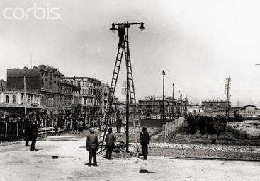 | Keywords: Installation of Electricity in Baku 1910s.jpg en Original caption Workmen are shown installing electricity in the city of Baku on the Caspian Sea Baku is the greatest center of oil production in the entire USSR s 1910 http //www corbisimages com/stock-photo/rights-managed/VV1253/installation-of-electricity-in-baku-russia popup 1 corbisimages com http //archive is/4UTwH archive is author Custom license marker 2013 07 24 PD-old Historical images of Baku Baku in the 1910s Street lights in Baku Uploaded with UploadWizard Black and white photographs of Azerbaijan |