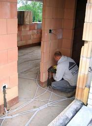 | Keywords: Installing electrical wiring2.jpg en Installing electrical wiring the old way This kind of electrical wire installation is still commonly practice in Europe yet is wasteful allot of brick is lost due to the cutting time-consuming not very handy when there is a burned trough/damaged wire A better alternative is the use of cable trays aldough they are somewhat more expensive Own KVDP 2008-06-17 Cable lining | ||||