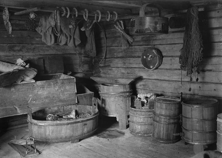 | Keywords: Interiör av matbod - Nordiska Museet - NMA.0037080.jpg Artwork Creator Nils Keyland sv Interiör av matbod På golvet till vänster står en laggad tina innehållande kött och fläsk Ett torkat köttstycke och korvar hänga på en stång i taket Närmast höger vid väggen en dricktunna med svagdricka och tapp samt en spisölhålk med lyftlock Till vänster en råttfälla <br /> Annat Utsikt över Sverige SE Värmland Utsikt över Sverige SE Värmland Jösse hd Mangskog Interiör av matbod På golvet till vänster står en laggad tina innehållande kött och fläsk Ett torkat köttstycke och korvar hänga på en stång i taket Närmast höger vid väggen en dricktunna med svagdricka och tapp samt en spisölhålk med lyftlock Till vänster en råttfälla <br /> Annat Utsikt över Sverige SE Värmland Utsikt över Sverige SE Värmland Jösse hd Mangskog<br /> Ämnesord Förvaring; Husgeråd; Interiör; Livsmedel; Mat photograph 18x13 cm Liggande 4651x3307 pixlar Liggande Institution Nordiska museet object history credit line accession number NMA 0037080 Nordiska museet cooperation project PD-Old Images from Nordiska museet NMA 0037080 Images from Nordiska museet/check NMA 0037080 Kitchen utensils Food storage Food products of Sweden Jösse härad Nils Keyland Barrels Wooden walls Wooden household objects 1919 in Sweden Mousetraps |