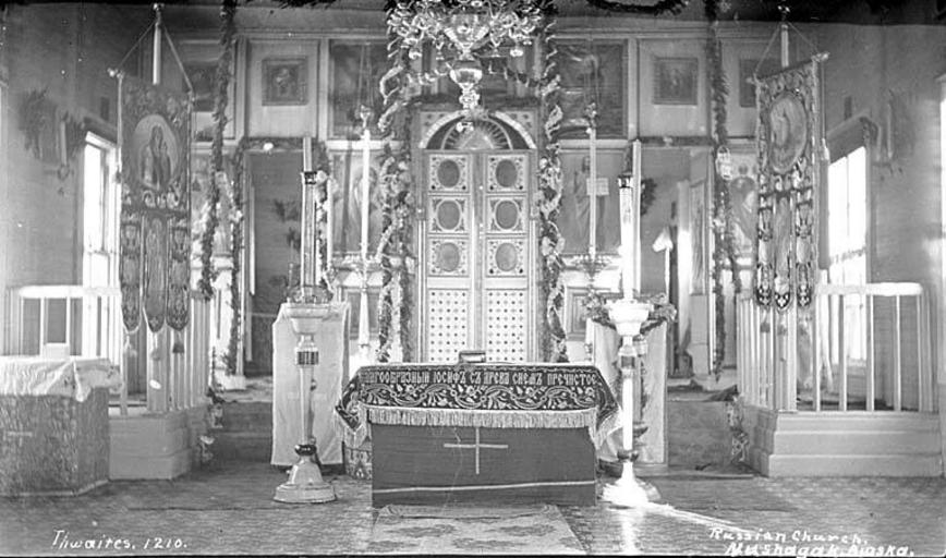 View Original:Interior of Church of St Peter and St Paul, Russian Orthodox church at Nushagak, ca 1912 (THWAITES 227).jpeg.jpg (766x452)
