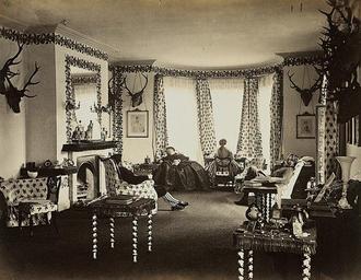 | Keywords: national galleries of scotland nationalgalleriesofscotland 1863 mar lodge marlodge drawing room drawingroom decorating curtains lodge victor albert prout victoralbertprout earl and countess of fife earlandcountessoffife braemar gathering -1863 braemargathering1863 sitting room. lounge sittingroomlounge black and white blackandwhite royalty royal family royalfamily aristocracy great britain. victorain greatbritainvictorain table chairs tablechairs lamp fashion striped stockings stripedstockings dress stag stag head staghead taxidermy mounted antler deer mountedantlerdeer trophy hunting monochrome black and white Victor Albert Prout 1863 Accession no. PGP 162.55 Medium Albumen print Size 13.80 x 17.80 cm Credit Purchased 1958 For more information please select here. Victor Albert Prout 1863 Accession no. PGP 162.55 Medium Albumen print Size 13.80 x 17.80 cm Credit Purchased 1958 For more information please select here. |