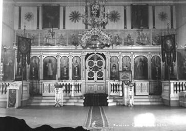 | Keywords: Interior of Russian Orthodox Church, Unalaska, ca 1912 (THWAITES 247).jpeg Photograph Creator John E Thwaites Caption on image Russian Church Unalaska PH Coll 247 351 Subjects LCTGM Orthodox churches--Alaska--Unalaska; Interiors--Alaska--Unalaska; Russian Orthodox Greek Catholic Church of America--Facilities--Alaska--Unalaska Subjects LCSH Church decoration and ornament--Alaska--Unalaska depicted place Unalaska Island ca 1912 Institution University of Washington UWASH-THWAITES-source accession number thwaites 247 PD-old-auto-1923 1940 Information field Order Number THW181 Images from the John E Thwaites Photographs of Alaska Collection to check Holy Ascension of Our Lord Russian Orthodox church Unalaska Interiors of churches in Alaska |