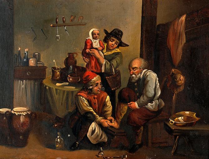 Keywords: Interior of a surgery with a surgeon attending to a man's fo Wellcome V0017589.jpg object history exhibition history credit line Wellcome Images http //wellcomeimages org/indexplus/obf_images/c2/3a/4564d2e7cd58f7bca3de8fa47443 jpg Gallery http //wellcomeimages org/indexplus/image/V0017589 html accession number PD-old-auto-1923 1690 Images uploaded by Fæ Wellcome V0017589 jpg Files from Wellcome Images check needed V0017589 jpg Works after David Teniers the Younger Wellcome Library oil paintings Surgery in the Wellcome Collection