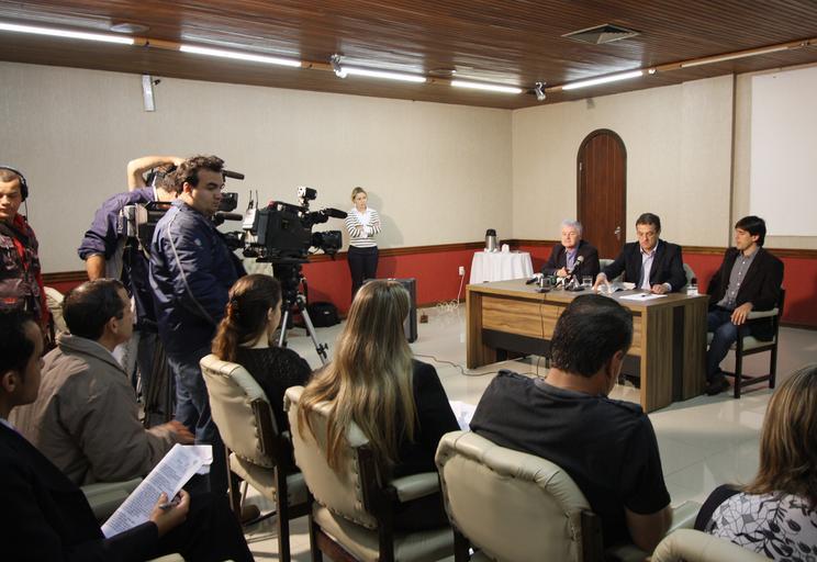 Keywords: indoor room auditorium hall Entrevista coletiva com os deputados Valdir Rossoni, Plauto Miró e André Bueno. Foto: Nani Gois Entrevista coletiva com os deputados Valdir Rossoni, Plauto Miró e André Bueno. Foto: Nani Gois