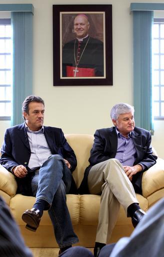 | Keywords: people groupshot indoor Presidente da AL, deputado Valdir Rossoni, e 1º secretário, Plauto Miro, durante visita ao Bispo de Cascavel, Dom Mauro Aparecido dos Santos. Foto: Nani Gois Presidente da AL, deputado Valdir Rossoni, e 1º secretário, Plauto Miro, durante visita ao Bispo de Cascavel, Dom Mauro Aparecido dos Santos. Foto: Nani Gois |
