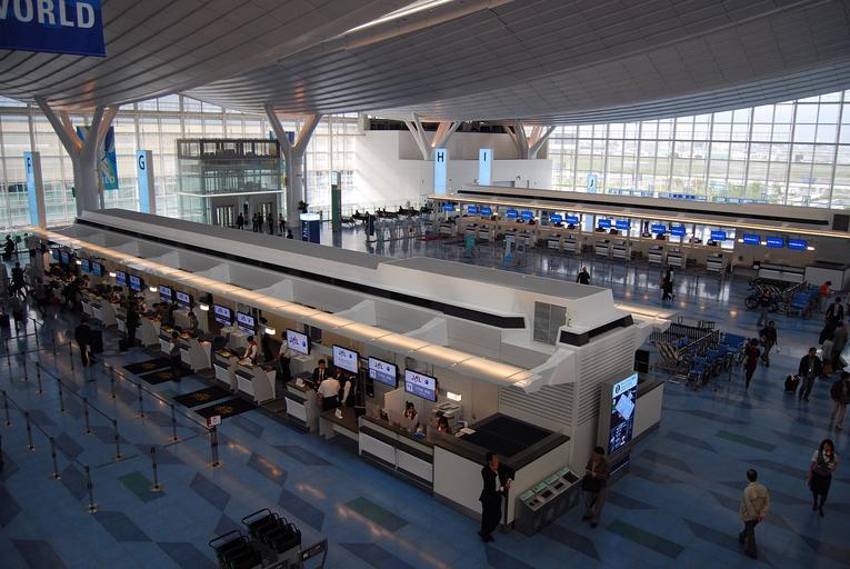 Keywords: International Airport International Term no3.JPG ja 羽田空港国際線ターミナルの出発カウンター 投稿 が撮影 2010-10-24 toshinori baba Interior of Tokyo International Airport International Terminal Airport check-ins at Tokyo International Airport Japan Airlines Korean Air