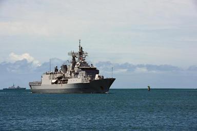 | Keywords: International Ships Arrive At JBPHH For RIMPAC 2016 160628-N-QL961-048.jpg en 160628-N-QL961-048 PEARL HARBOR June 28 2016 Royal New Zealand Navy ship HMNZS Te Kaha FFH 155 arrives at Joint Base Pearl Harbor-Hickam for Rim of the Pacific 2016 Twenty-six nations more than 40 ships and submarines more than 200 aircraft and 25 000 personnel are participating in RIMPAC from June 30 to Aug 4 in and around the Hawaiian Islands and Southern California The world's largest international maritime exercise RIMPAC provides a unique training opportunity that helps participants foster and sustain the cooperative relationships that are critical to ensuring the safety of sea lanes and security on the world's oceans RIMPAC 2016 is the 25th exercise in the series that began in 1971 U S Navy Photo By Mass Communication Specialist 1st Class Phillip Pavlovich/RELEASED <br>Unit Navy Public Affairs Support Element Detachment Hawaii 2016-06-28 Petty Officer 1st Class Phillip Pavlovich https //www dvidshub net/image/2696874/international-ships-arrive-jbphh-rimpac-2016 160628-N-QL961-048 2016-06-29 03 31 PEARL HARBOR HI US PD-USGov-Military-Navy Foreign warships at Pearl Harbor RIMPAC 2016 Images from DoD uploaded by Fæ HMNZS Te Kaha F77 |