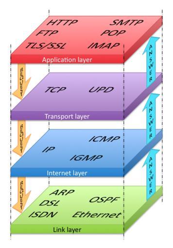 Keywords: InternetProtocolStack.png en A graphic representation of the Internet Protocol Stack according to RFC 1122 with some of the important protocols visible sv En grafisk representation över protokollstacken i datakommunikation över internet enligt RFC 1122 own Bughunter 2009-02-08 Computer architecture diagrams Internet protocols |