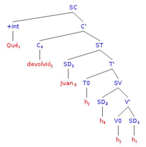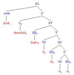 | Keywords: Interrogativa parcial.png es Interrogativa directa parcial el objeto por el que se pregunta aparece desplazado al especificador del SC y el verbo al núcleo del SC para cotejar rasgos +qu lo cual produce la inversión verbo-sujeto 2011-08 own created with the help of http //ironcreek net/phpsyntaxtree/ phpsyntaxtree Davius cc-zero Uploaded with UploadWizard Syntax trees |