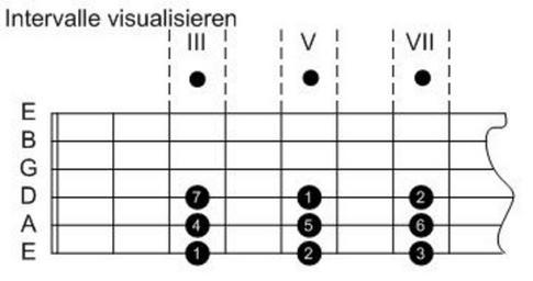 Keywords: Intervalle visualisieren.jpg Eigenanfertigung 2005-11-20 own assumed Red Rooster scales on guitar