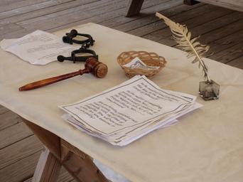 Keywords: interview paperwork quill law lawyer judge colonial rustic harsh royalty majesty mistake documents writing skill court