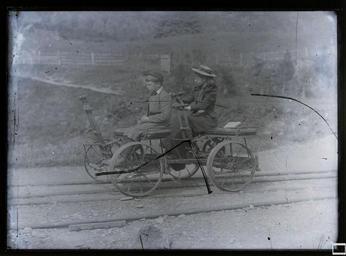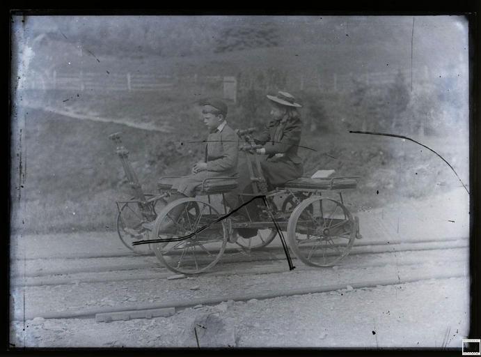 | Keywords: carriage track gallery2flickr public domain publicdomain drawing I wonderful old contraption which is hand powered by way of the handles that stick up in front of the passengers (I guess you push and pull them) and which runs on train-like tracks. My suspicion is that this would have been an attraction at a seaside resort. Not in great condition, but I could make the scan a lot better and patch it up a bit! One of many images that I am slowly importing from my whatsthatpicture.com website. See the original at www.whatsthatpicture.com/index.php?q=gallery&g2_itemI... I wonderful old contraption which is hand powered by way of the handles that stick up in front of the passengers (I guess you push and pull them) and which runs on train-like tracks. My suspicion is that this would have been an attraction at a seaside resort. Not in great condition, but I could make the scan a lot better and patch it up a bit! One of many images that I am slowly importing from my whatsthatpicture.com website. See the original at www.whatsthatpicture.com/index.php?q=gallery&g2_itemI... |
