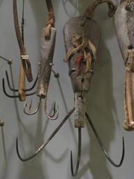 Keywords: Inuit hooks.JPG Inuit hooks for ice fishing self-made at Copenhagen Nationalmuseet 2007-11 McLeod Fishing in Greenland Ice fishing equipment Fishing hooks Inuit hunting tools