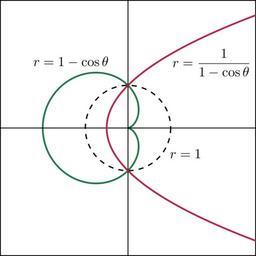Keywords: Inverse Curves Parabola Cardioid.svg en The cardioid and the parabola are inverse curves own Jim belk 2009-11-01 Cardioids Parabolas Inversion geometry