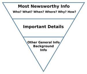 | Keywords: Inverted pyramid 2.svg The Inverted pyramid technique of journalism writing Inverted_pyramid jpg 2011-01-24 09 15 UTC Inverted_pyramid jpg The Air Force Departmental Publishing Office AFDPO derivative work Makeemlighter Vector text versions Inverted pyramid svg Redrawn as SVG with text as paths Makeemlighter Inverted_pyramid jpg Original upload log This image is a derivative work of the following images File Inverted_pyramid jpg licensed with PD-USGov-Military-Air Force 2011-01-23T21 26 05Z P S Burton 718x569 31907 Bytes <nowiki> http //www shaw af mil/library/editorialpolicy submissions/newsarticles asp US Air Force Shawn Air Force Base 20th FW Editorial Policy Submission Guidelines Not given T</nowiki> Uploaded with derivativeFX Journalism |