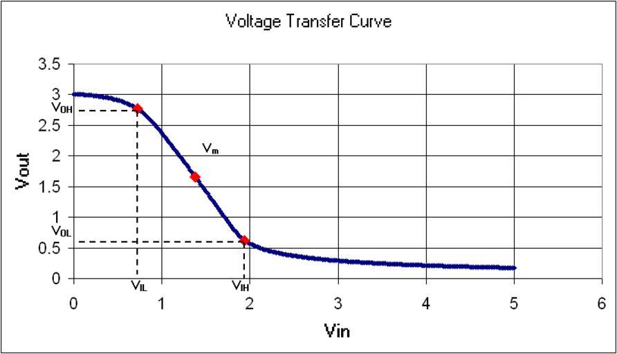 | Keywords: Inverter voltage transfer curve.png  graph Inverter voltage transfer curve from English Wikipedia Voltages marked on the graph VOH Output High - output above this mark is considered on 1 VOL Output Low - output below this mark is considered off 0 VIH Input High - input at or above this mark will turn the device off VIL Input Low - input at or below this mark will turn the device on Vm Midpoint Voltage - used for calculating noise margins gain and other parameters I am the author Nader Moussa I constructed this data from a device I built for my ECE442 class at North Carolina State University This is a Voltage Transfer Curve used to analyze a digital inverter circuit The data represents a general behavior for similar devices Since I am the author I release it to public domain Uploaded for use in Lithuanian Wikipedia Audriusa 13 29 5 March 2006 UTC Electrical diagrams |