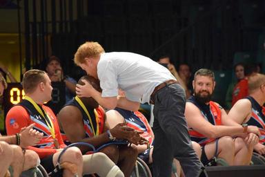 | Keywords: Invictus Games 2016, Wheelchair Basketball 160512-N-WW503-996.jpg en Prince Harry kisses the head of a U S team member after the team wins the gold in wheelchair basketball at the Invictus Games May 12 2016 in Orlando Fla The Invictus Games is an international adaptive sports competition for wounded ill and injured Service members and veterans U S Navy photo by Lt j g Marissa A Cruz/Released <br>Unit Commander Navy Installations Command 2016-05-11 Lt j g Marissa Cruz https //www dvidshub net/image/2600763/invictus-games-2016-wheelchair-basketball 160512-N-WW503-996 2016-05-19 19 29 FL US PD-USGov-Military-Navy Prince Harry of Wales 2016 Invictus Games Images from DoD uploaded by Fæ |