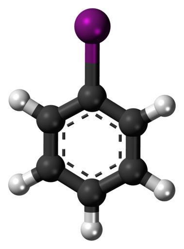 | Keywords: Iodobenzene 3D ball.png Ball-and-stick model of the iodobenzene molecule a compound consisting of a benzene ring substituted with an iodine atom Color code 505050 Carbon C black<br> F0F0F0 Hydrogen H white<br> 961496 Iodine I purple<br> 2011-08-02 own DS Visualizer Jynto talk Space-filling version cc-zero Images by Jynto Ball-and-stick models Iodobenzene |