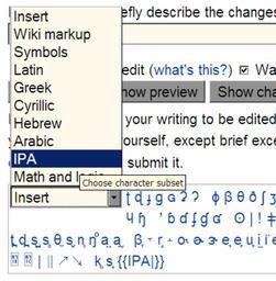 | Keywords: IPA inserts screenshot.png Screencap illustration own Stevertigo w t e created this work entirely by myself 1 <br/> Transferred from http //en wikipedia org en wikipedia to Commons by User varnent 2010-06-12 Stevertigo at http //en wikipedia org en wikipedia Stevertigo Wikipedia-screenshot no Original upload log page en wikipedia Inserts png 2010-06-12 05 11 Stevertigo 386×394× 22246 bytes <nowiki>focus</nowiki> 2010-06-12 04 55 Stevertigo 455×343× 20393 bytes <nowiki> Screencap illustration I ~~~ created this work entirely by myself ~~~~~ ~~~ none </nowiki> International Phonetic Alphabet |
