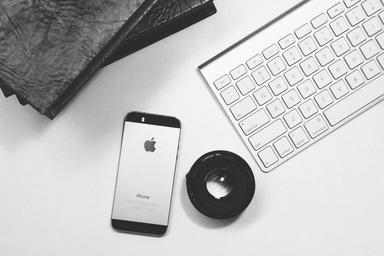 Keywords: iphone smartphone mobile technology keyboard business creative office desk lens black and white notebooks