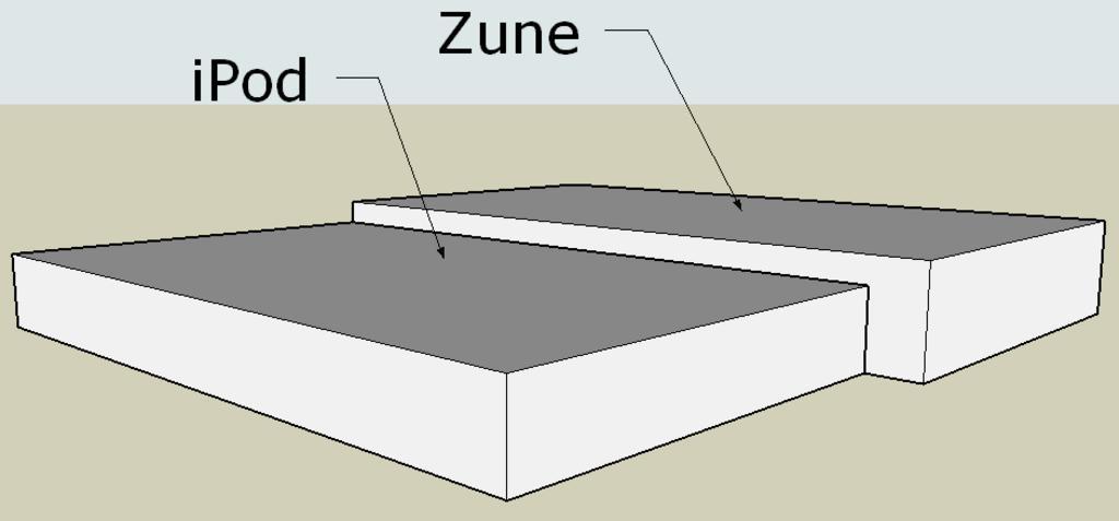 MAKE A MEME View Large Image ...Pod Zune Comparison.png A picture assembled in Google SketchUp based on specifications of both the Apple 30GB iPod and Microsoft 30GB Zune to compare the difference in size Note that the Zune's screen is 44 larger than the iPod's 3 versus 2 ...