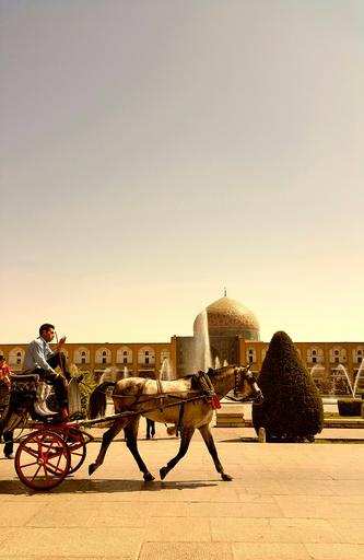 Keywords: iran isfahan carriage mosque tree horse warm