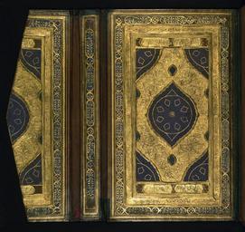 | Keywords: Iranian - Binding from Five Poems (Quintet) - Walters W610binding - Bottom Interior Open.jpg This dark brown leather binding with a flap is original to the manuscript Walters W 610 It has central ovals and pendants all brushed with gold and dentelle-style doublures with filigree work decorated central ovals pendants and cornerpieces in blue and gold century 16 AD Safavid dark brown leather with gold Folio cm 32 5 20 accession number W 610 binding 83617 Henry Walters Baltimore date and mode of acquisition unknown Walters Art Museum Henry Walters Acquired by Henry Walters place of origin Iran Walters Art Museum license 3D Islamic bookbindings in the Walters Art Museum Khamsa of Nizami Safavid Walters MS 610 Art of Iran Media contributed by the Walters Art Museum needs category review |