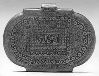 | Keywords: Iranian - Talisman - Walters 421205.jpg Amulets are often worn on the body or hung in architectural spaces Their purpose is to protect against ailments and other types of danger and to encourage success and fortitude This 18th-century Iranian example is covered with micrographic writing including verses from the Qur'an and the 99 Beautiful Names al-asma al-husna of God which describe his divine attributes Qur'anic verses are considered by some believers to have protective powers 1748 Early Modern carnelian cm 3 6 5 0 3 accession number 42 1205 31176 Henry Walters New York date of acquisition unknown by purchase Sadie Jones Mrs Henry Walters New York 1931 by inheritance Joseph Brummer New York date of acquisition unknown by purchase Walters Art Museum 1942 by purchase Museum purchase formerly part of the Walters Collection 1942 Date A H Rajab 1161; Translation Oh God truly God is all- powerful in all things Poetry and Prayer Islamic Manuscripts from the Walters Art Museum The Walters Art Museum Baltimore 2010 place of origin Iran Walters Art Museum license Islamic metalwork in the Walters Art Museum Art of Iran Media contributed by the Walters Art Museum needs category review |