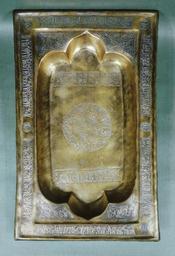 | Keywords: Iranian - Tray from a Small Serving Table - Walters 54530.jpg This small tray is decorated with arabesques and with Arabic inscriptions that bestow good wishes- including good fortune blessing wealth joy and happiness- on its owner late 12th-early 13th century Medieval brass silver and copper inlay cm 4 35 5 22 5 accession number 54 530 21788 Dikran Kelekian Paris Henry Walters city Baltimore Walters Art Museum Henry Walters Acquired by Henry Walters 1930 Translation Glory prosperity wealth happiness God's support entirety well-being Muhammad's intercession perpetuity sufficiency honor tranquility gratitude mastery victory victoriousness superiority elevation mercy ease health favor potency power God's sympathy safety charity long life and perpetual commendation to its owner Art of Persia Ithaca College Museum of Art Ithaca 1966-1967 The Arts of Islam Hayward Gallery London 1976 Islamic Insights Katonah Gallery Katonah 1980 place of origin Khorasan Iran Walters Art Museum license Islamic metalwork in the Walters Art Museum Art of Iran Media contributed by the Walters Art Museum needs category review |