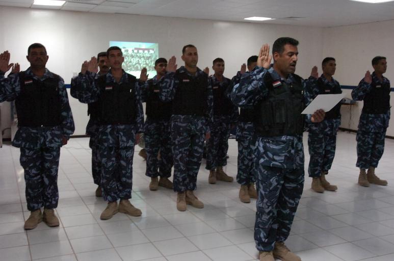 | Keywords: Iraqi Police Graduates Key to the Future DVIDS40232.jpg en Iraqi police take an oath to protect and serve the people of Iraq during their graduation ceremony at Forward Operating Base Falcon March 28 The class will stay together as a squad when they get to their battalion U S Army photo by Pfc Nathaniel Smith 4th IBCT 1st Inf Div Public Affairs 2007-03-28 https //www dvidshub net/image/40232 40232 2007-04-02 18 16 FORWARD OPERATING BASE FALCON PD-USGov Forward Operating Base Falcon Images from DoD uploaded by Fæ |