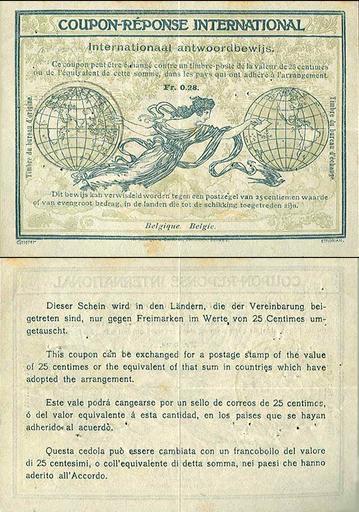 Keywords: IRC1907-1930Belgium.jpg en International reply coupon of Belgium was exchangeable in any country of the Universal Postal Union Roma type 1907 face and reverse side ru Π Π΅ΠΆΠ΄ΡΠ½Π°Ρ ΠΎΠ΄Π½ΡΠΉ ΠΎΡΠ²Π΅ΡΠ½ΡΠΉ ΠΊΡΠΏΠΎΠ½ ΠΠ΅Π»ΡΠ³ΠΈΠΈ ΠΏΠΎΠ΄Π»Π΅ΠΆΠ°Π» ΠΎΠ±ΠΌΠ΅Π½Ρ Π½Π° ΠΌΠ°Ρ ΠΊΠΈ Π² Π»ΡΠ±ΠΎΠΉ ΡΡΡ Π°Π½Π΅-ΡΠ»Π΅Π½Π΅ ΠΡΠ΅ΠΌΠΈΡ Π½ΠΎΠ³ΠΎ ΠΏΠΎΡΡΠΎΠ²ΠΎΠ³ΠΎ ΡΠΎΡΠ·Π° Π ΠΈΠΌΡΠΊΠΈΠΉ ΡΠΈΠΏ 1907 Π»ΠΈΡΠ΅Π²Π°Ρ ΠΈ ΠΎΠ±ΠΎΡ ΠΎΡΠ½Π°Ρ ΡΡΠΎΡ ΠΎΠ½Π° own collection uploaded by Nickpo 1907; uploaded 2008-06-01 PD-old International reply coupons |