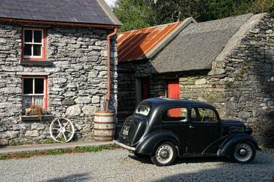 Keywords: ireland oldtimer auto stone built house barn automotive old stone house lapsed stone wall hut
