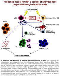 Keywords: IRF8 in host response.png en A model for the regulation of antiviral immune responses by ICSBP/IRF-8 transcription factor Own Fabrizio mattei 2007-12-17 Immunology