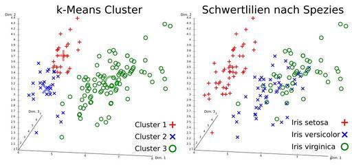 | Keywords: Iris Flowers Clustering kMeans de.svg Iris flower data set clustered using k means left and true species in the data set right Note that k-means is non-determinicstic so results vary Cluster means are visualized using larger semi-transparent markers The visualization was generated using ELKI Iris flower data set mit dem k-Means-Algorithmus analysiert links und die wahren Spezien im Datensatz rechts Da k-means nicht deterministisch ist variieren die Ergebnisse Die Clusterzentren sind durch größere halbtransparente Markierungen eingezeichnet Visualisiert mit ELKI И исы Фише а класте изованные с помощью метода k-с едних слева и настоящие виды набо ов данных сп ава етод k-с едних не является дете мини ованным поэтому езультаты отличаются Цент ы класте ов отмечены с помощью к упных полуп оз ачных ма ке ов Визуализация была получена с помощью ELKI own Chire Other versions Iris_Flowers_Clustering_kMeans svg Iris_Flowers_Clustering_kMeans_ru svg Other fields ELKI + Cc-zero K-means algorithm Cluster analysis Machine learning |
