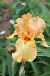 Keywords: iris peach blossom spring petal flower garden blooming colorful springtime blooms floral frilly tongue soft