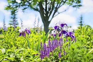Keywords: irises garden summer nature flowers green purple petal gardening violet