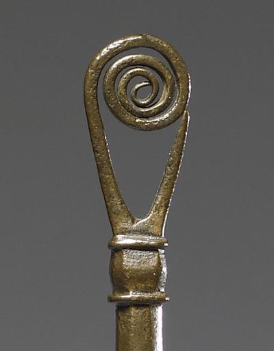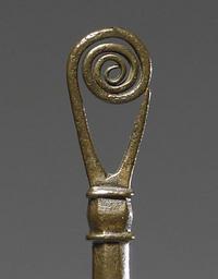 | Keywords: Irish Celtic - Pin with Spiral Head - Walters 542340 - Detail.jpg This elegantly tapering bronze pin has an unusual finial made by dividing the stem at the head and curving one stem backward into a spiral Spiral-headed pins with two outward curling spirals have been found in Ireland and in 7th- and 8th-century Anglo-Saxon sites This example was found at Armagh Northern Ireland in 1886 Armagh was an important royal site from pre-historic times into the Christian era and from the mid-5th century AD onwards the See of Saint Patrick Ireland's patron saint century 6 8 Early Medieval bronze cm 22 7 1 2 0 6 accession number 54 2340 699 Found in Armagh Northern Ireland 1886 Robert Day Cork Ireland date and mode of acquisition unknown Robert Day Sale Sotheby Wilkinson Hodge London May 19-22 1913 no 355 William Randolph Hearst California Joseph Brummer Paris Joseph Brummer Sale Parke-Bernet New York May 11-14 1949 no 276 Walters Art Museum 1949 by purchase Museum purchase 1949 Objects of Adornment Five Thousand Years of Jewelry from the Walters Art Gallery Baltimore Cooper-Hewitt National Design Museum New York; Chrysler Museum of Art Norfolk; Carnegie Museum of Art Pittsburgh; San Antonio Museum of Art San Antonio; Philbrook Museum of Art Tulsa; Honolulu Academy of Arts Honolulu; New Orleans Museum of Art New Orleans; Milwaukee Art Museum Milwaukee; Minneapolis Institute of Arts Minneapolis; Toledo Museum of Art Toledo; The John and Mable Ringling Museum of Art Sarasota 1984-1987 Jewelry from the Walters Art Museum and the Zucker Family Collection The Walters Art Gallery Baltimore 1987 Jewelry - Ancient to Modern The Walters Art Gallery Baltimore 1979-1980 place of origin Padua Italy Walters Art Museum license Medieval metalwork in the Walters Art Museum Celtic jewellery Jewellery in the Walters Art Museum Celtic art |