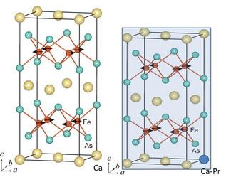 MAKE A MEME View Large Image Iron (6842745269).jpg When calcium atoms yellow spheres in these iron-based crystals left are replaced on some occasions with praseodymium blue sphere in right image the crystals are able to superconduct at up to 47K - but the crystals can ...