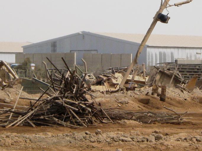 Keywords: Iron Claw Academy graduates its first class DVIDS123950.jpg en An Iraqi army mine resistant ambush protected vehicle equipped with an interrogator arm a long extending metal arm with a two pronged blade at the end and a video camera searches a pile of debris for a simulated improvised explosive device during route clearance training at Camp Taji Iraq Oct 15 2008 The Iraqi's are being trained by U S Soldiers from A Company 40th Engineer Battalion attached to Task Force 1/6 The Iraqi's are taught battle drills how to look for and recognize IED's and what to do when they think they've encountered one methods of structuring their route clearing convoys and how to keep the public safe from the IED's 2008-10-15 https //www dvidshub net/image/123950 123950 2008-10-23 07 56 CAMP TAJI IQ PD-USGov Camp Taji Images from DoD uploaded by Fæ |