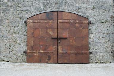 Keywords: iron door door goal castle stone wall input old door