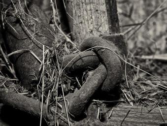 Keywords: iron iron parts iron compounds hay dust dirty old close black and white recording