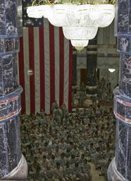 | Keywords: Ironhorse Soldiers 'on top of the world' after becoming U.S. citizens DVIDS113335.jpg en Soldiers from the 4th Infantry Division and Multi-National Division Baghdad along with service members from across Iraq wait in the central rotunda of the Al Faw Palace for the naturalization ceremony to begin Sept 1 2008 that will usher them in as new citizens of the United States of America 2008-09-01 Staff Sgt Scott Wolfe https //www dvidshub net/image/113335 113335 2008-09-05 14 42 BAGHDAD IQ PD-USGov Al-Faw Palace Images from DoD uploaded by FĂŚ |