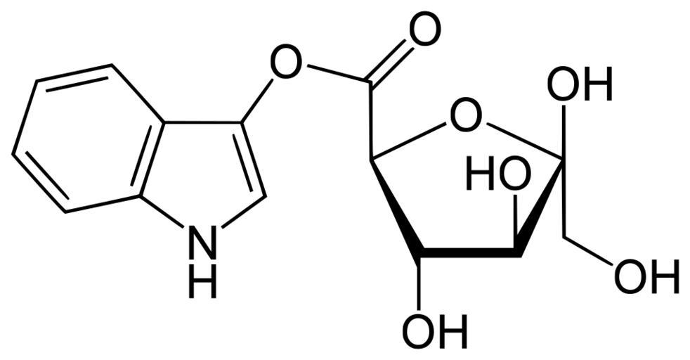 Keywords: Isatan B.svg en Isatan B indigo precursor from leaves of Isatis tinctoria de Isatan B Indigovorläufer im Färberwaid Isatis tinctoria ; Indoxyl-5-ketogluconat own Yikrazuul 2010-07-17 Indigo dye Glycosides